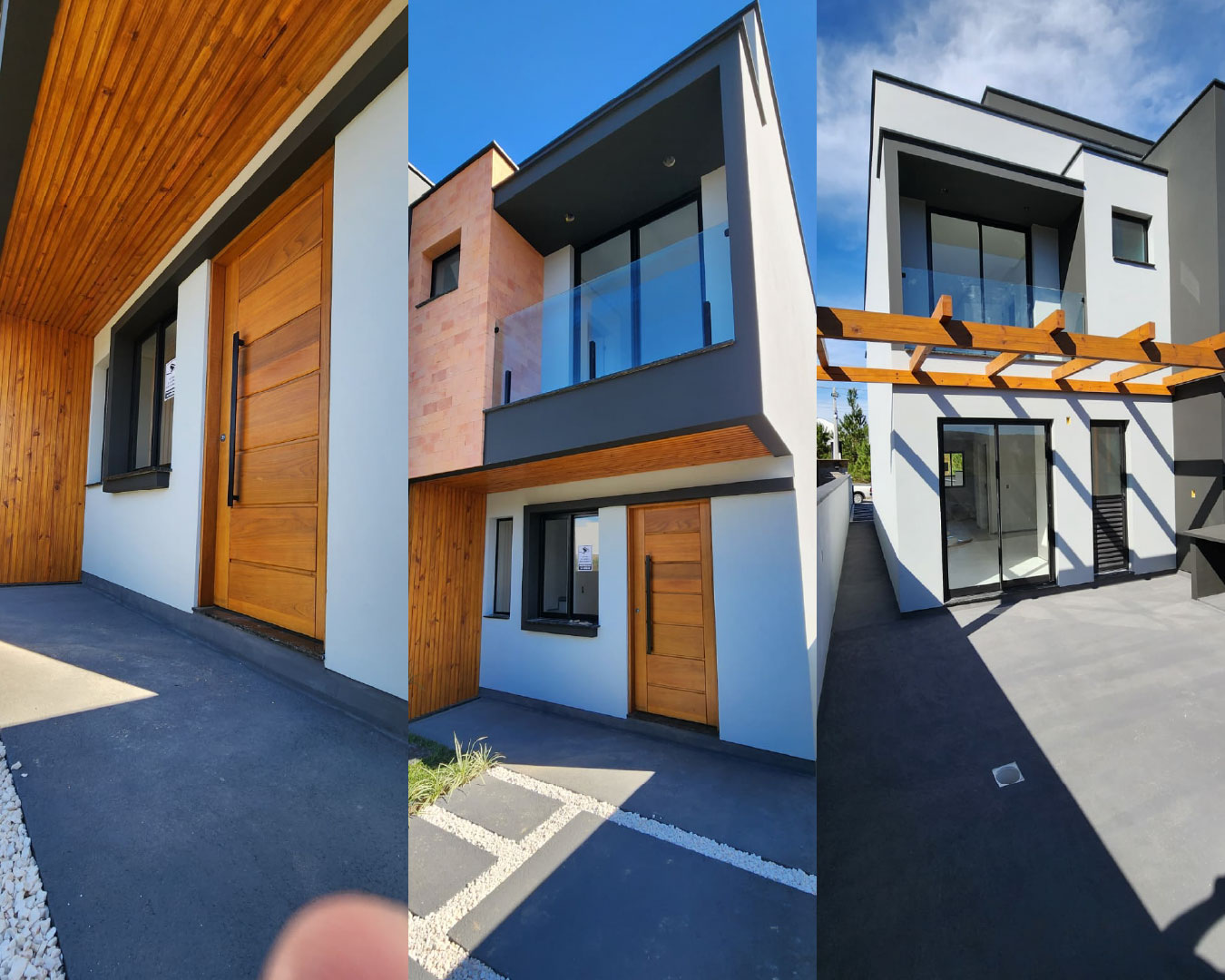 Nesse projeto ampliamos as janelas e fizemos uma mesanino para ganhar área de convivência. Na área externa optamos por ardósia.